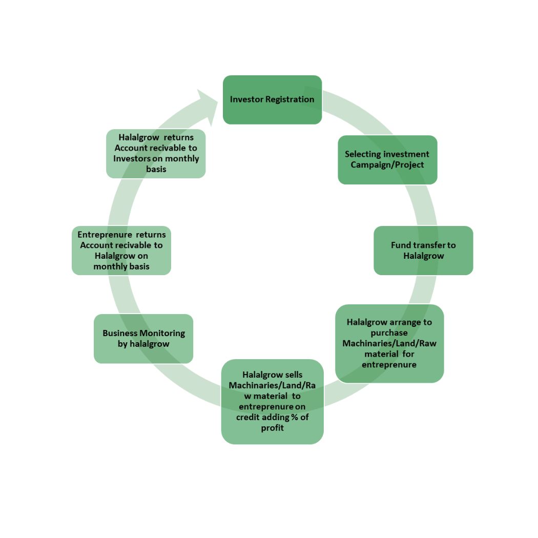 Entrepreneur Engagement – Entrepreneurs apply for funding and align with halal structures such as Mudarabah, Musharakah or Murabaha.